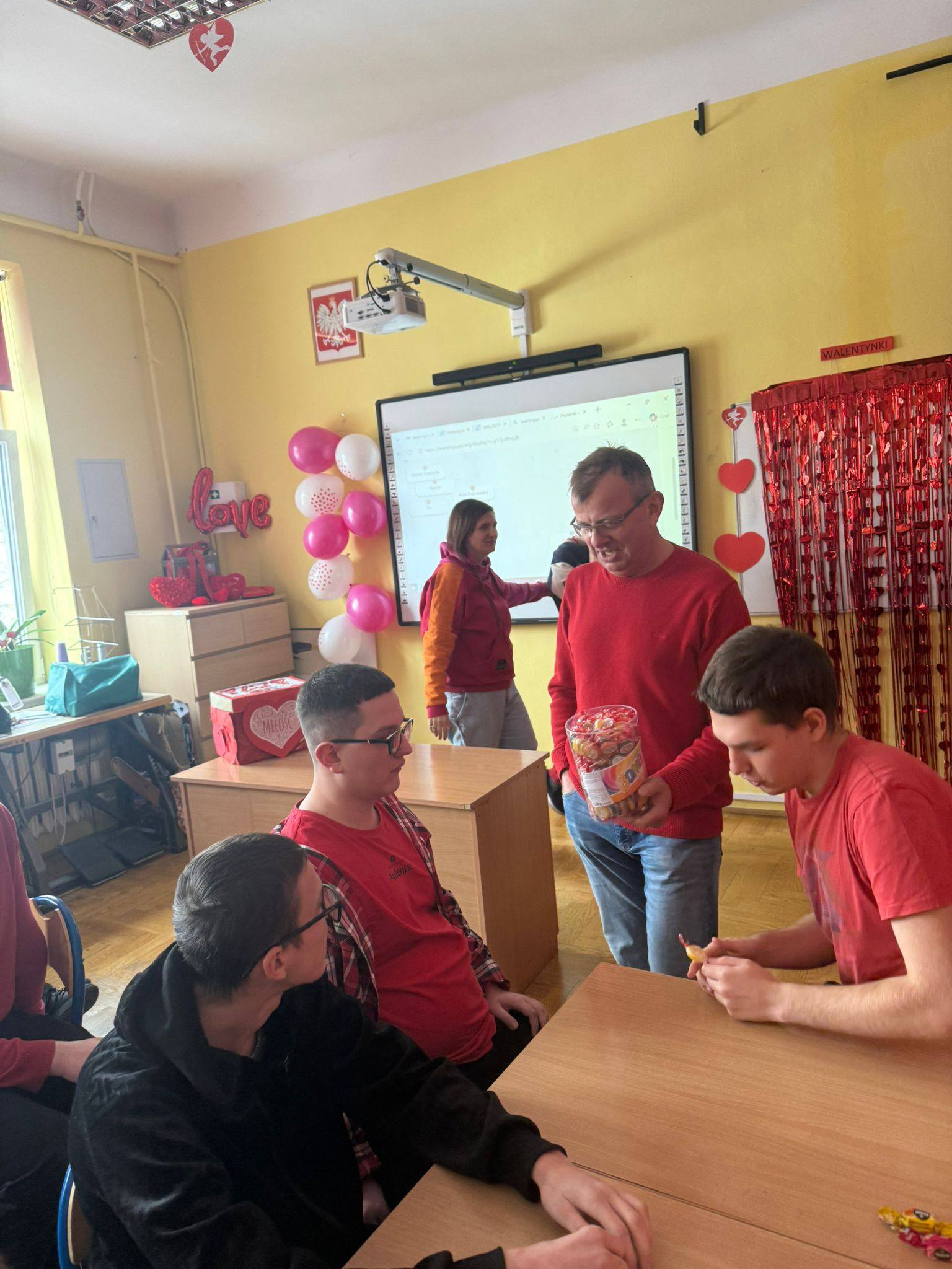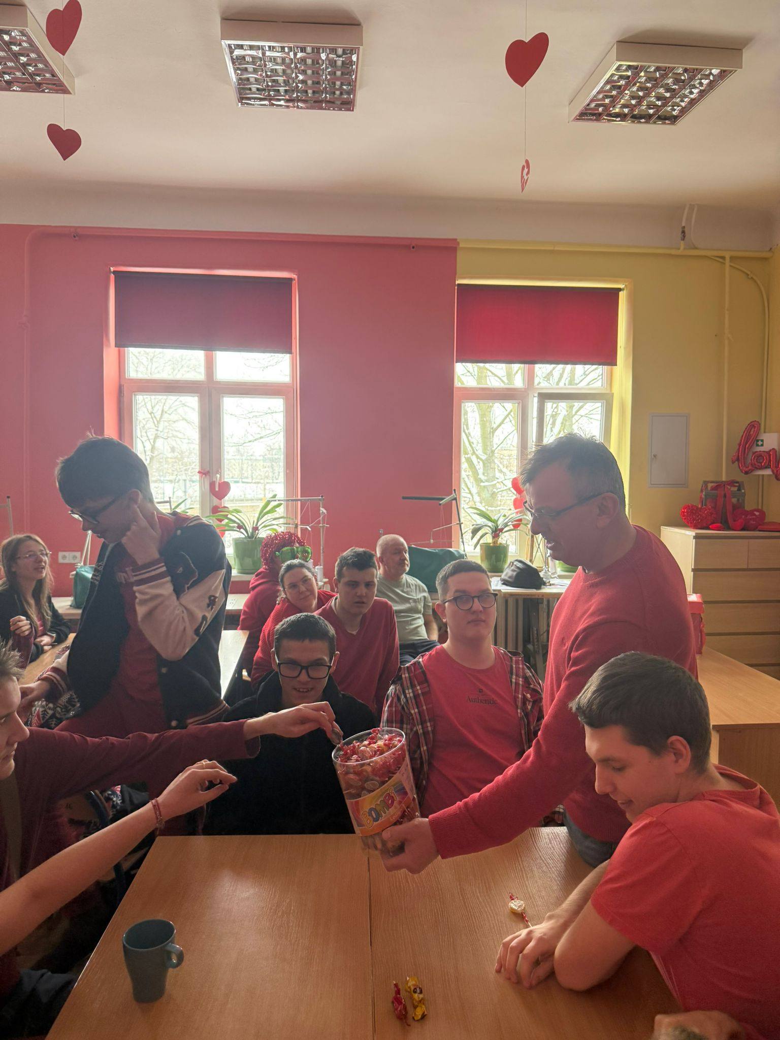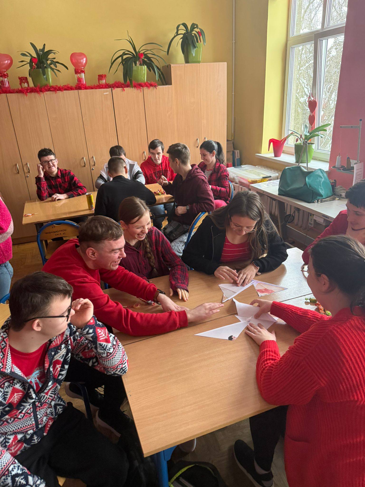 16 lutego uczniowie Szkoły Przysposabiającej do Pracy uczestniczyli w wyjątkowych warsztatach walentynkowych Na początku z zaciekawieniem uczniowie słuchali prezentacji o historii walentynek oraz o św. Walentym – patronie zakochanych. Następnie uczniowie brali udział w różnorodnych zadaniach i ćwiczeniach, które wprowadziły nas w walentynkowy nastrój, ale także pozwoliły rozwijać kreatywność i współpracę. Odwiedził nas również Pan Dyrektor, który z okazji walentynek obdarował uczniów lizakami – to była bardzo miła niespodzianka, za którą serdecznie dziękujemy