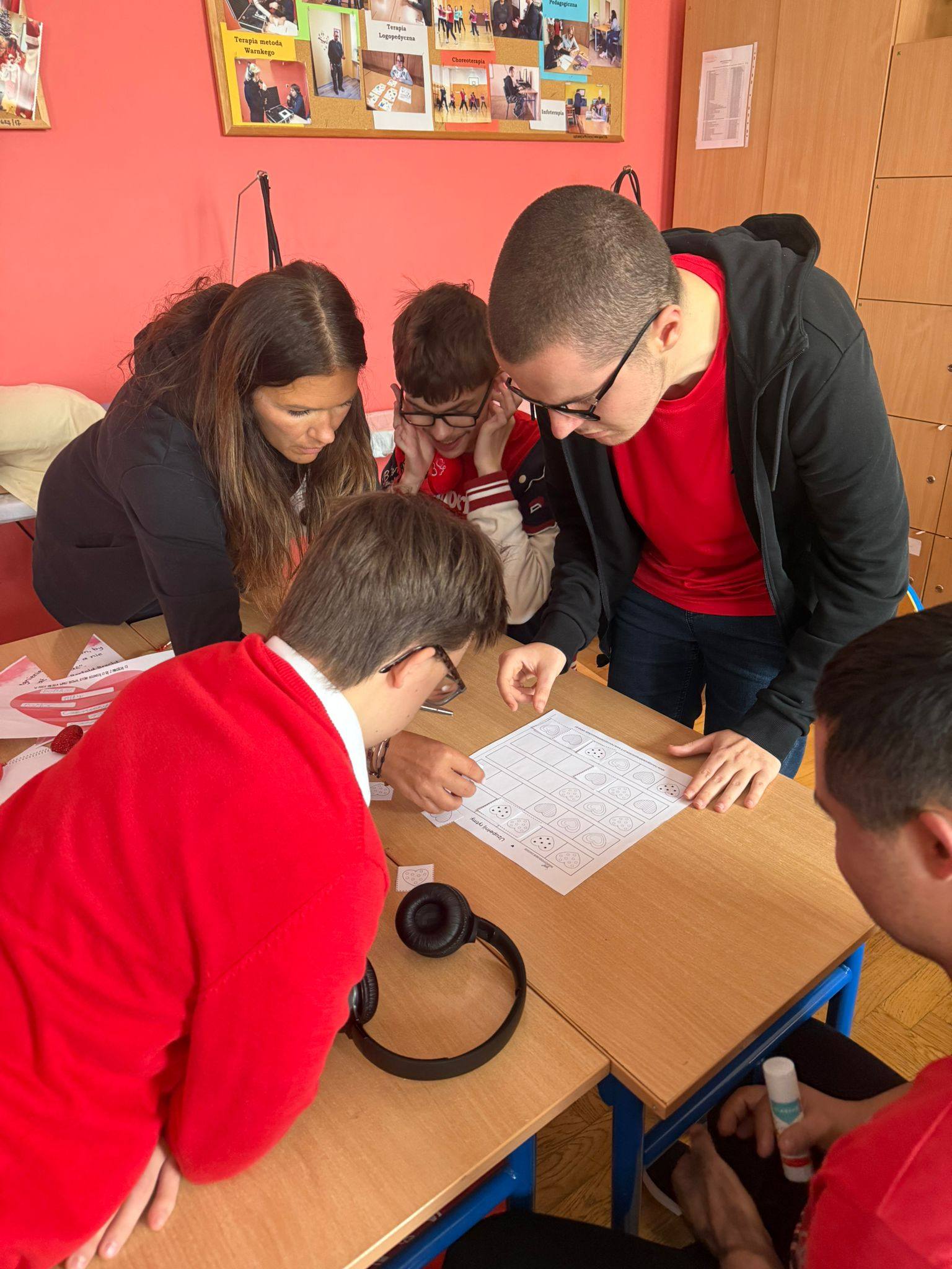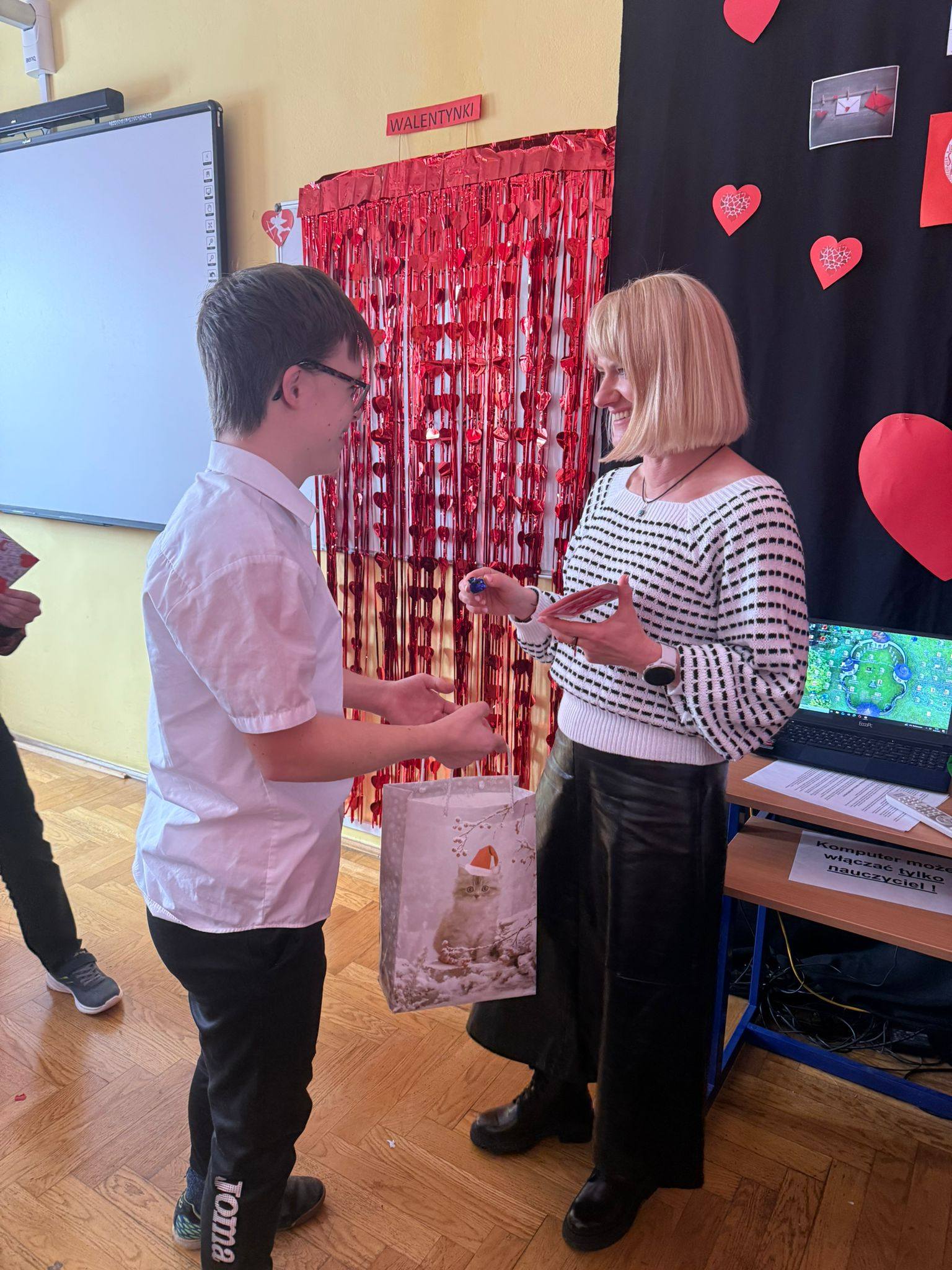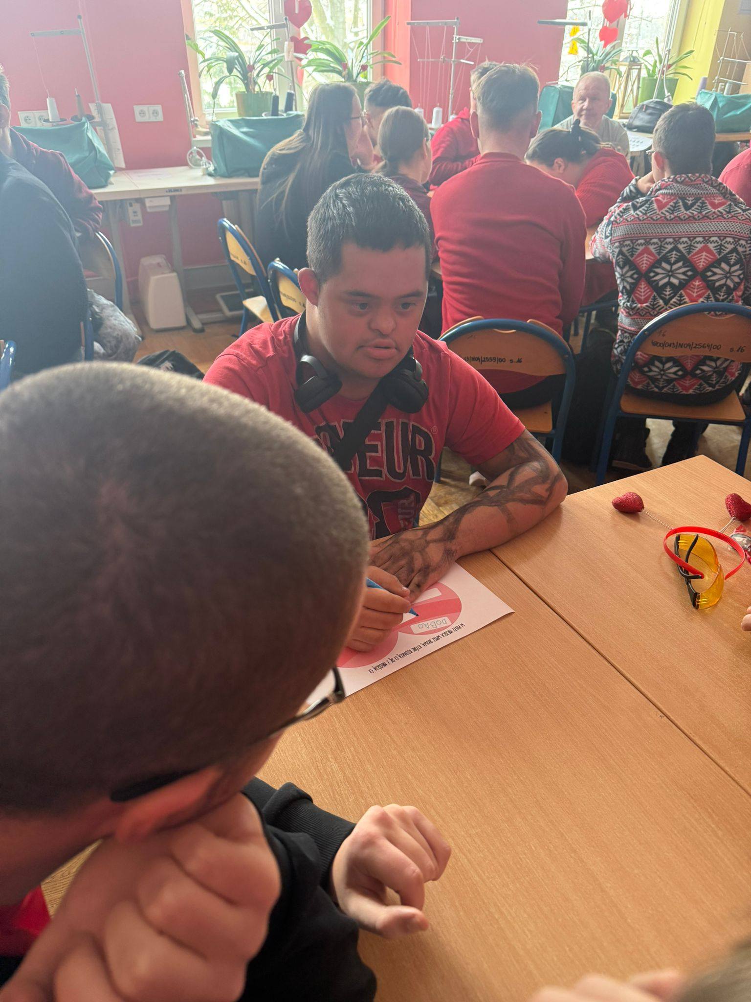 16 lutego uczniowie Szkoły Przysposabiającej do Pracy uczestniczyli w wyjątkowych warsztatach walentynkowych Na początku z zaciekawieniem uczniowie słuchali prezentacji o historii walentynek oraz o św. Walentym – patronie zakochanych. Następnie uczniowie brali udział w różnorodnych zadaniach i ćwiczeniach, które wprowadziły nas w walentynkowy nastrój, ale także pozwoliły rozwijać kreatywność i współpracę. Odwiedził nas również Pan Dyrektor, który z okazji walentynek obdarował uczniów lizakami – to była bardzo miła niespodzianka, za którą serdecznie dziękujemy