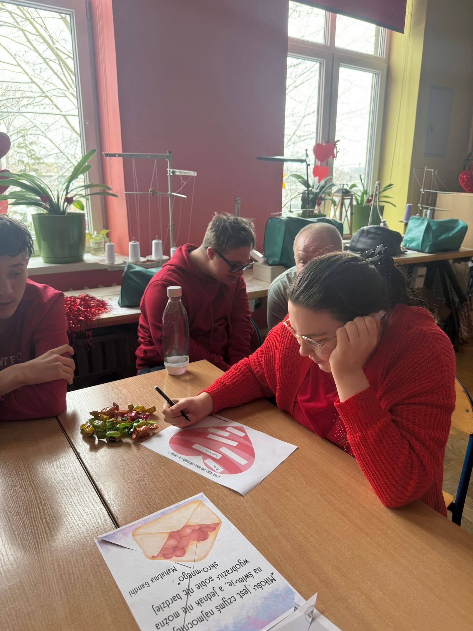 Dużo radości przyniosło rozdanie poczty walentynkowej – miłe słowa i własnoręcznie wykonane kartki wywołały wiele uśmiechów.